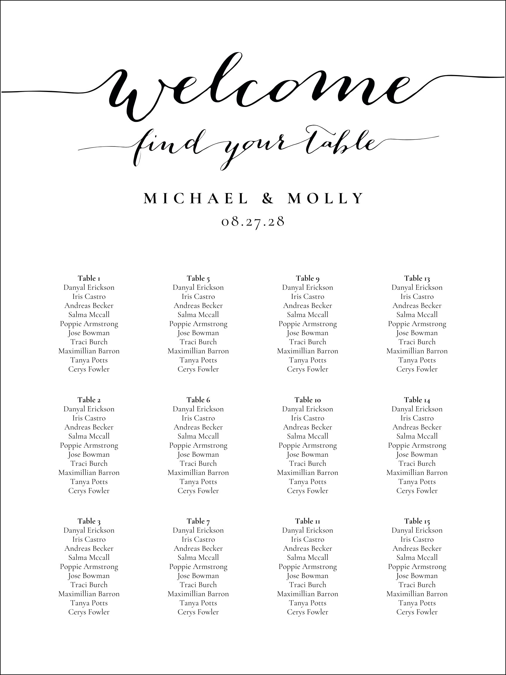 Wedding Hand Calligraphy Seating Chart Template