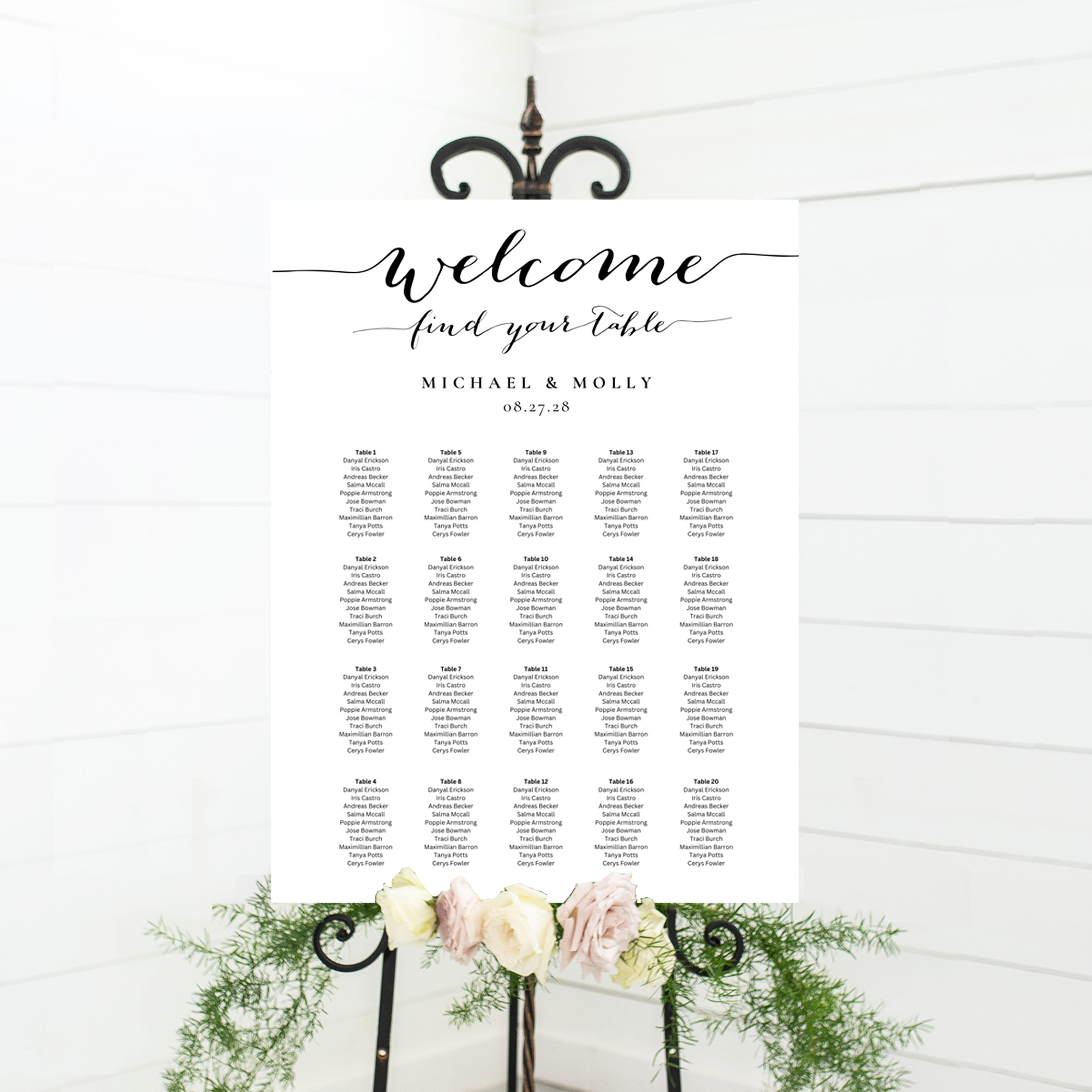 – The words “WELCOME’ and ‘FIND YOUR TABLE’ cannot be edited